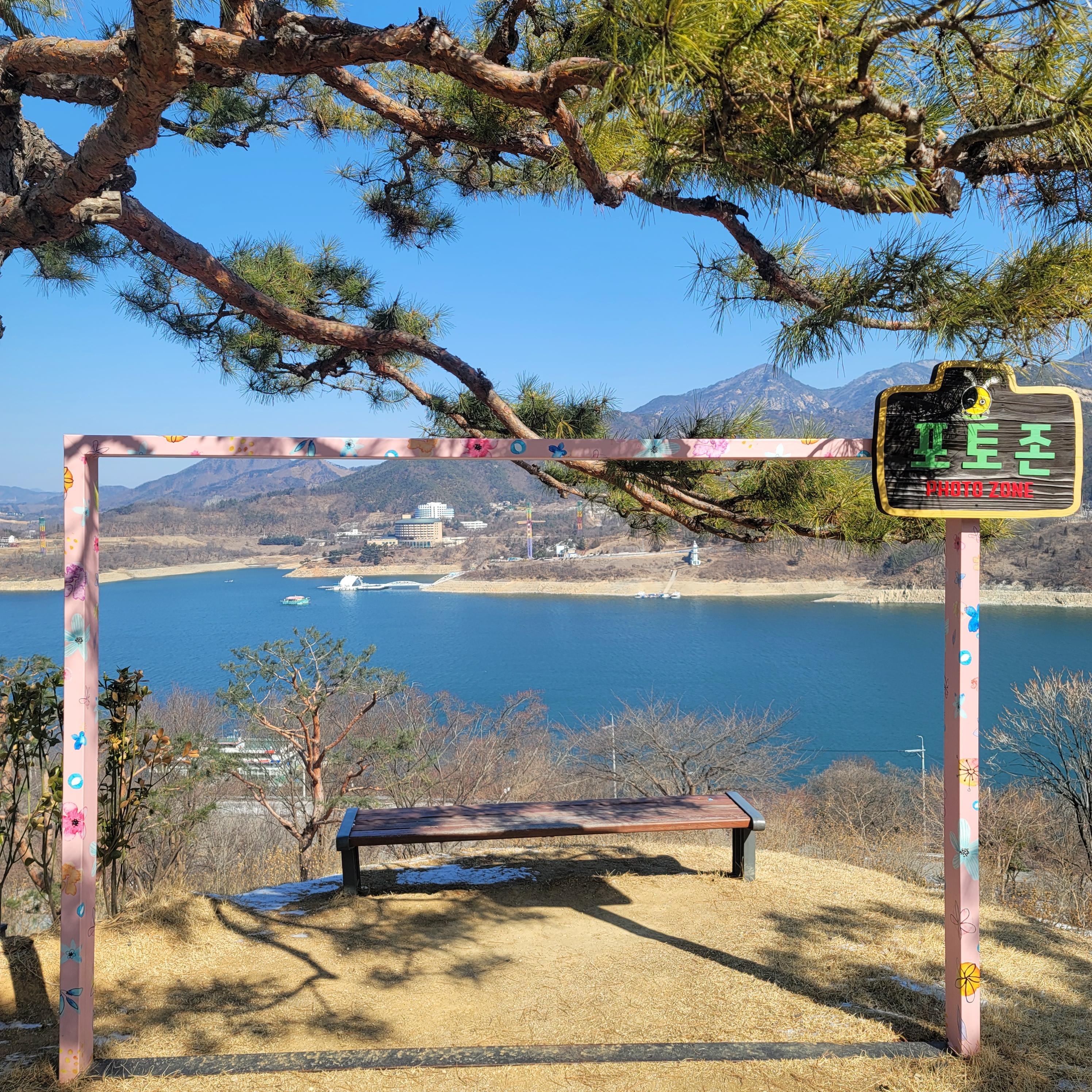 청풍호가 내려다보이는 곳에 포토존이 마련되어 있어서 프레임에 맞춰 사진 엄청 열심히 찍고 왔다.